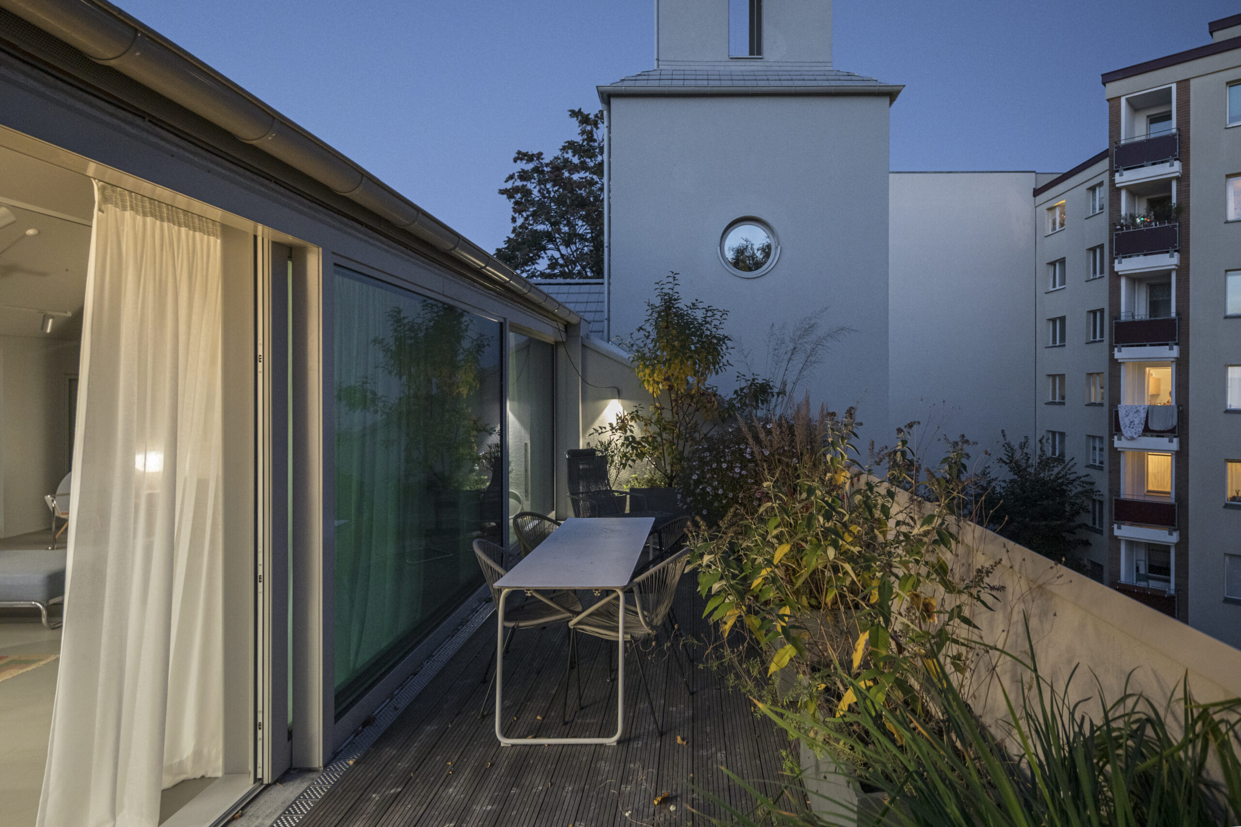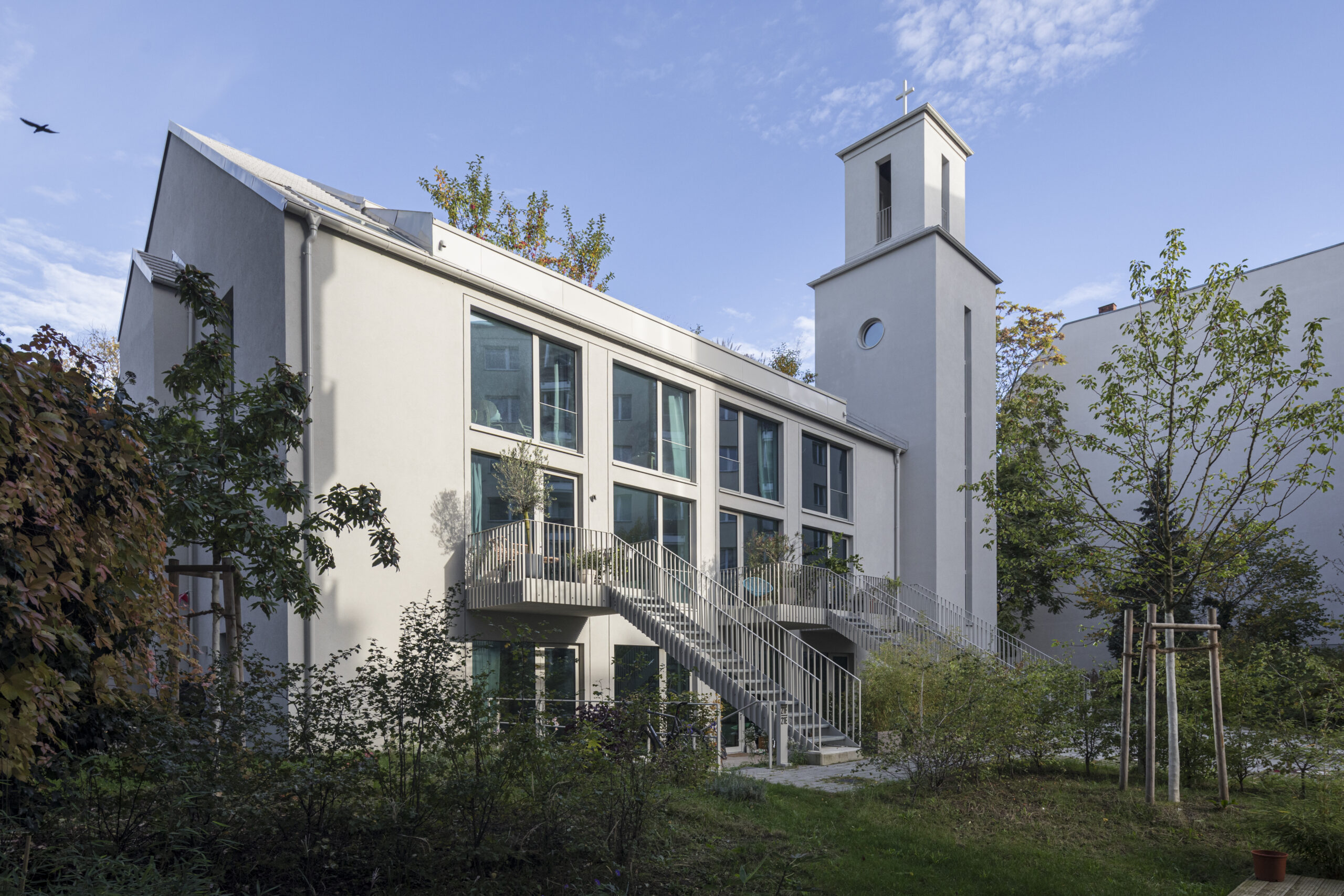 Entstanden sind 14 individuelle Wohneinheiten – 8 in der Wohnkirche und 6 im Lofthaus – die urbanes Wohnen mit außergewöhnlichem Raumgefühl vereinen. Ein privater Park im Innenbereich schafft eine grüne Oase mitten in der Stadt und verbindet die beiden Gebäude zu einem harmonischen Ensemble.