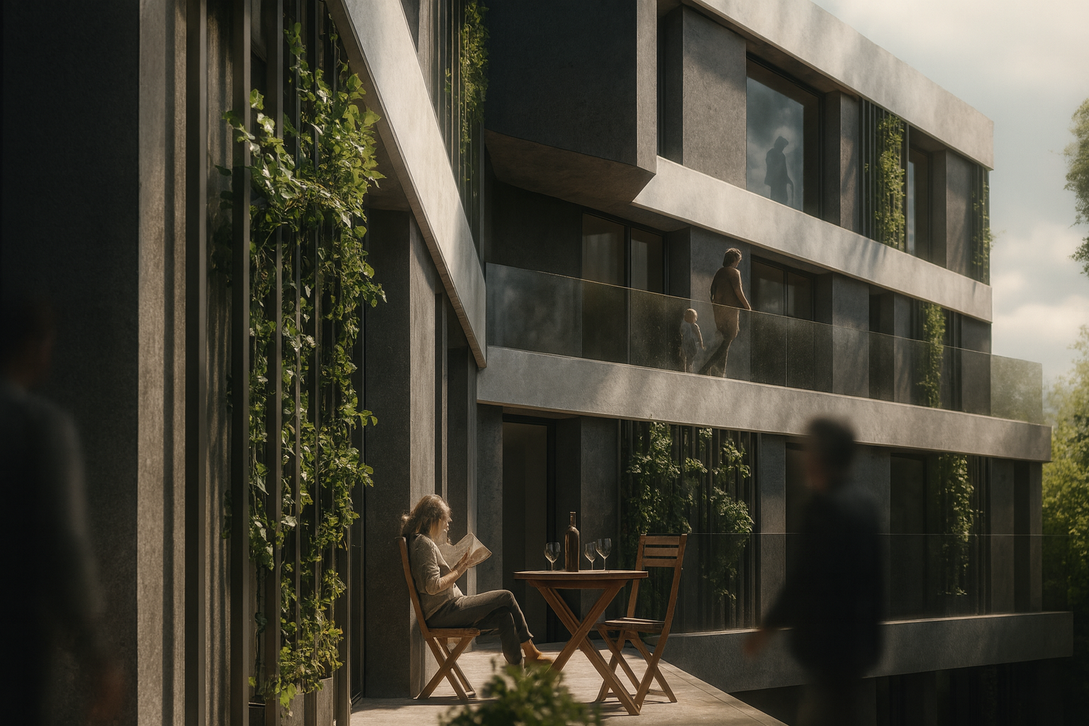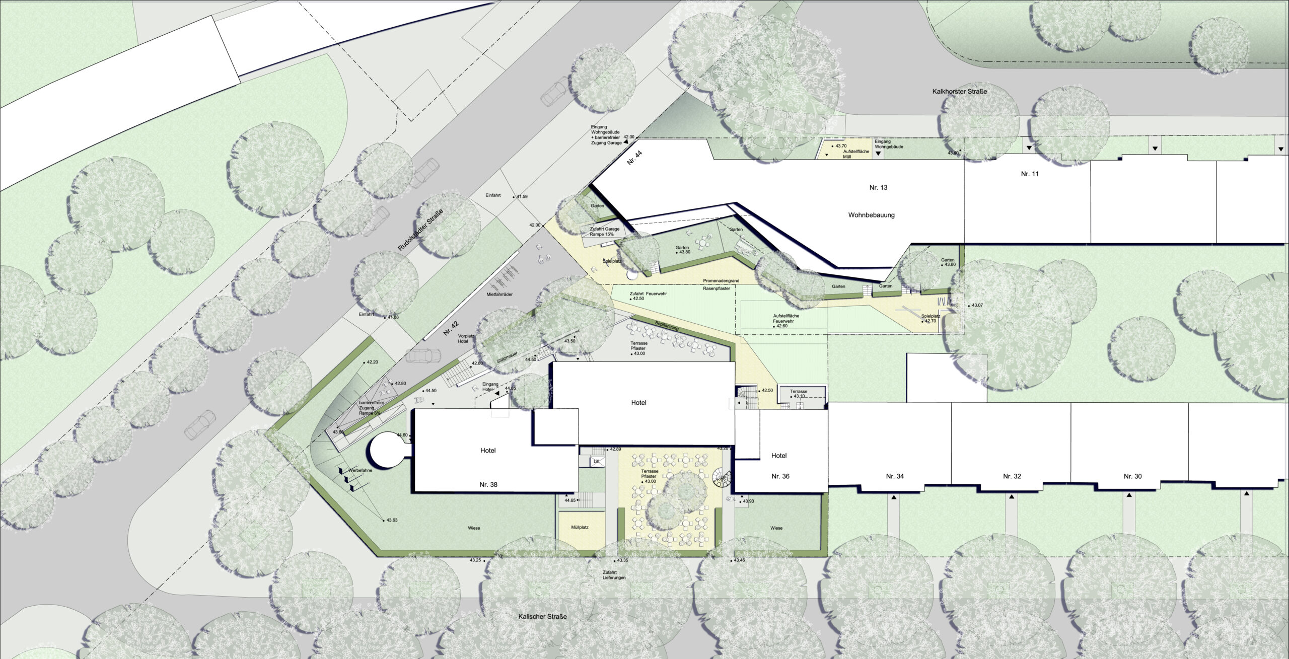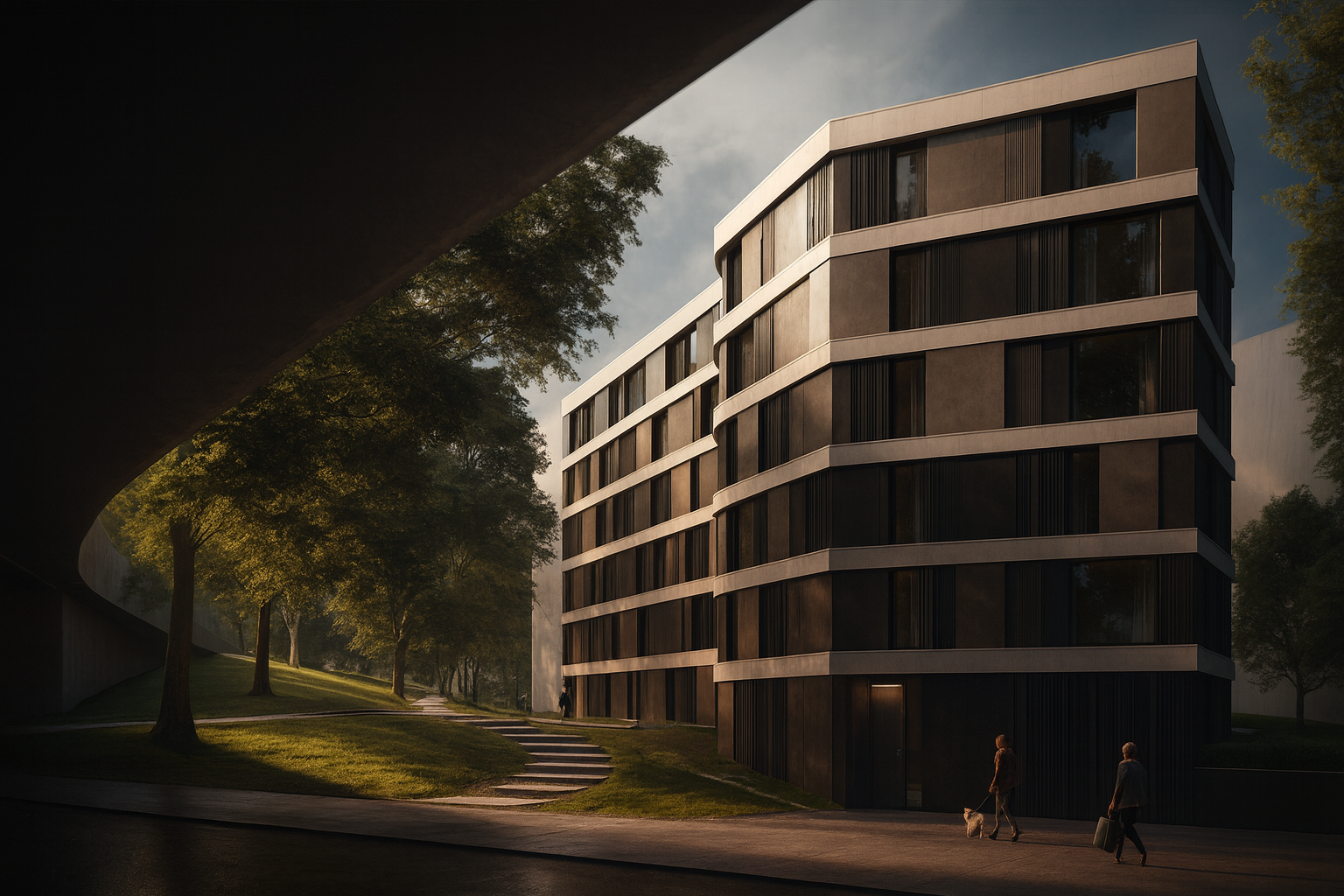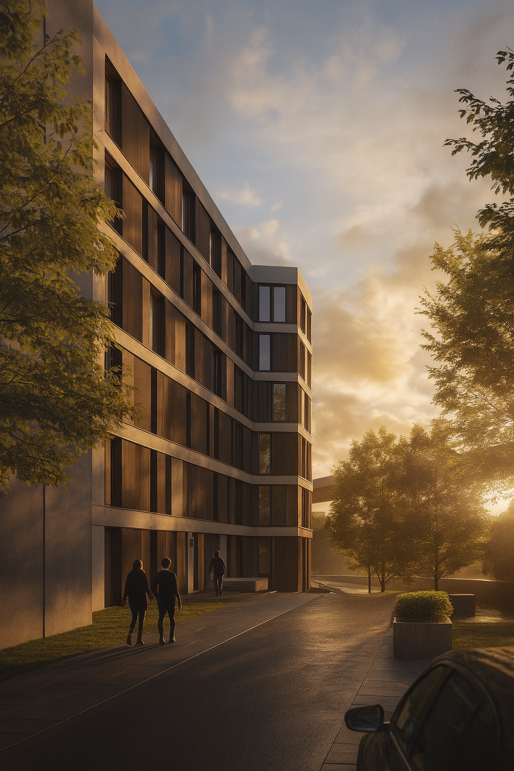 Das Projekt setzt ein bewusstes Zeichen für das Wohnen inmitten der Stadt: Es stellt sich dem Lärm der Kfz-Trassen nicht entgegen, sondern setzt sich gestalterisch mit ihm auseinander. Ein edelsteinartiger Baukörper bildet den städtebaulichen Abschluss an der Kalkhorster Straße und markiert das Wohngebiet weithin sichtbar – sowohl von der Rudolstädter Straße als auch von der Autobahn. Das Gebäude reagiert auf die heterogene Umgebung mit drei differenzierten Fassaden, die über begrünte Elemente und Lamellen den Lärm abschirmen und gleichzeitig Raum für Individualität und Durchgrünung schaffen. Innen öffnet sich die Architektur in Richtung Hof, mit durchdachten Abstandsflächen und flexiblen Wohnungsgrundrissen. Der Entwurf verbindet stadträumliche Präsenz, architektonische Identität und zukunftsgerichtete Lösungen im Umgang mit Lärm und Klima – und schafft damit eine neue Adresse, die urbanes Wohnen in lauter Umgebung neu denkt.