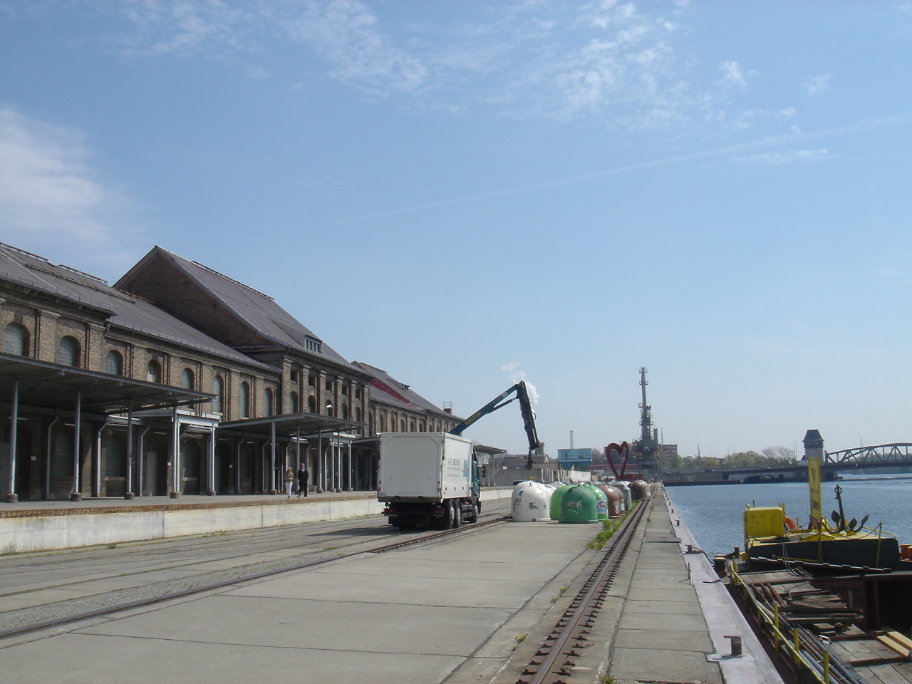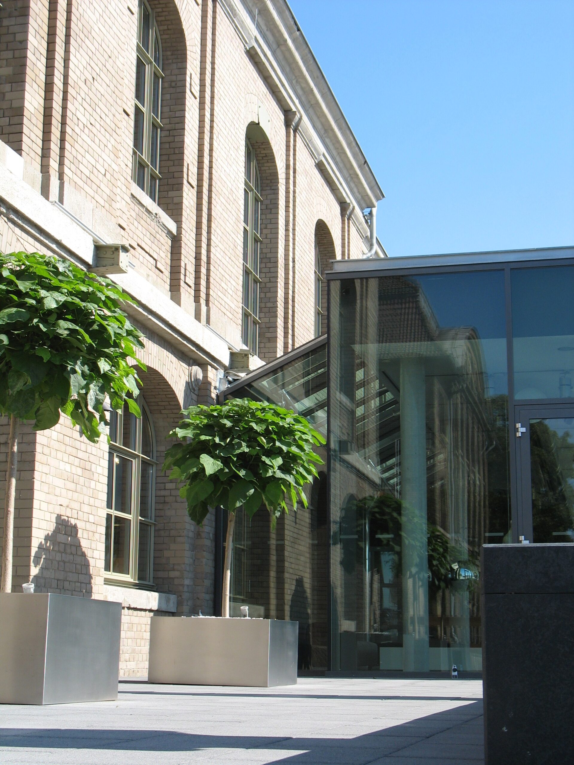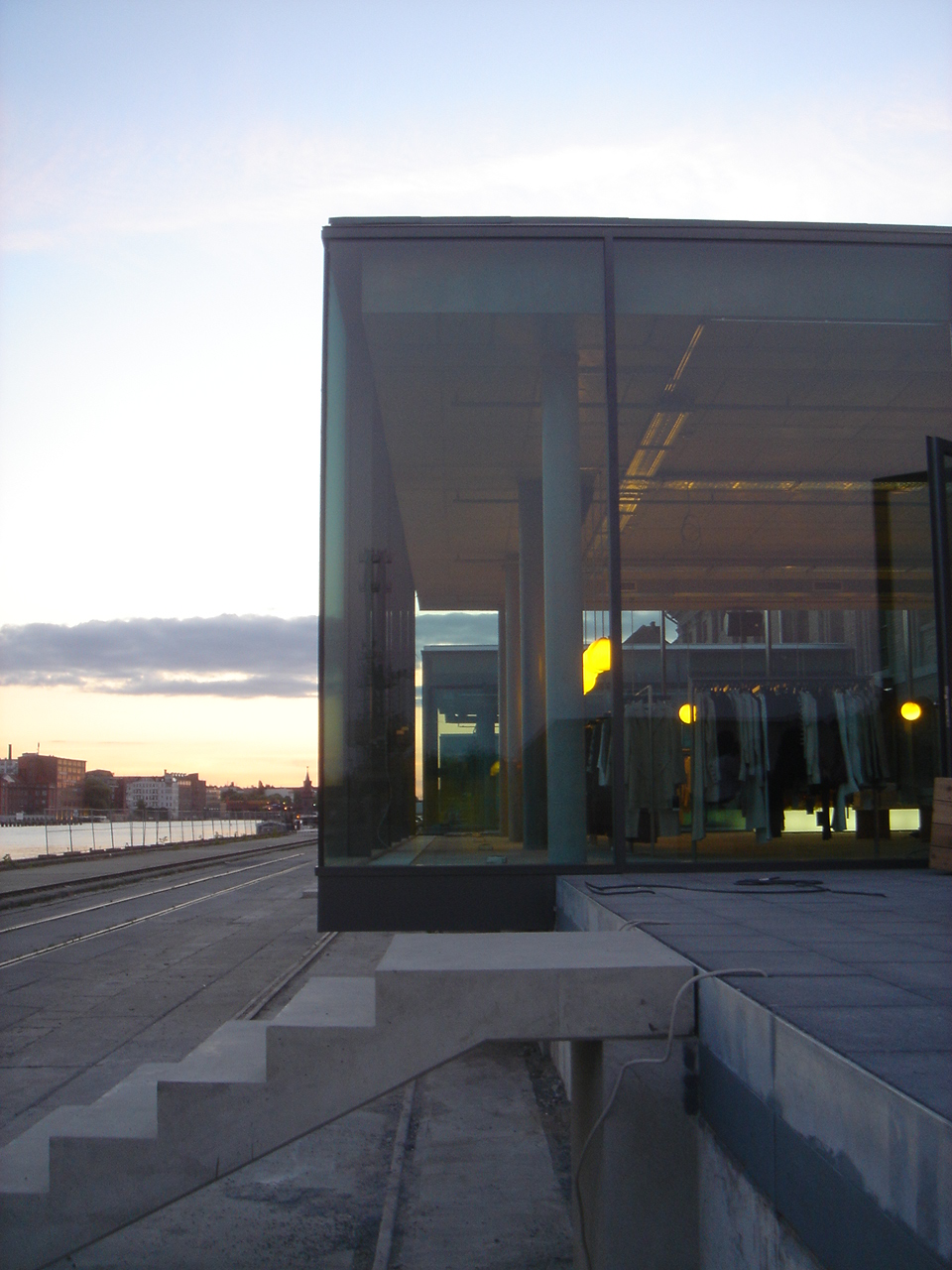 Im Rahmen der behutsamen Sanierung der historischen „Lagerhalle Ost“ am Berliner Osthafen entstand ein einzigartiger Showroom-Komplex für Modelabels. Das um 1900 errichtete Speichergebäude mit markanter Klinkerfassade wurde denkmalgerecht revitalisiert und durch drei gläserne Pavillons an der Spreeseite ergänzt. Die transparenten Glasanbauten erinnern in ihrer Anmutung an Schiffscontainer und fügen sich zurückhaltend in das industrielle Erscheinungsbild ein, ohne den Charakter der historischen Backsteinarchitektur zu stören. Auf über 2.500 m² entstand so eine außergewöhnliche Verbindung aus Geschichte und zeitgenössischem Design.