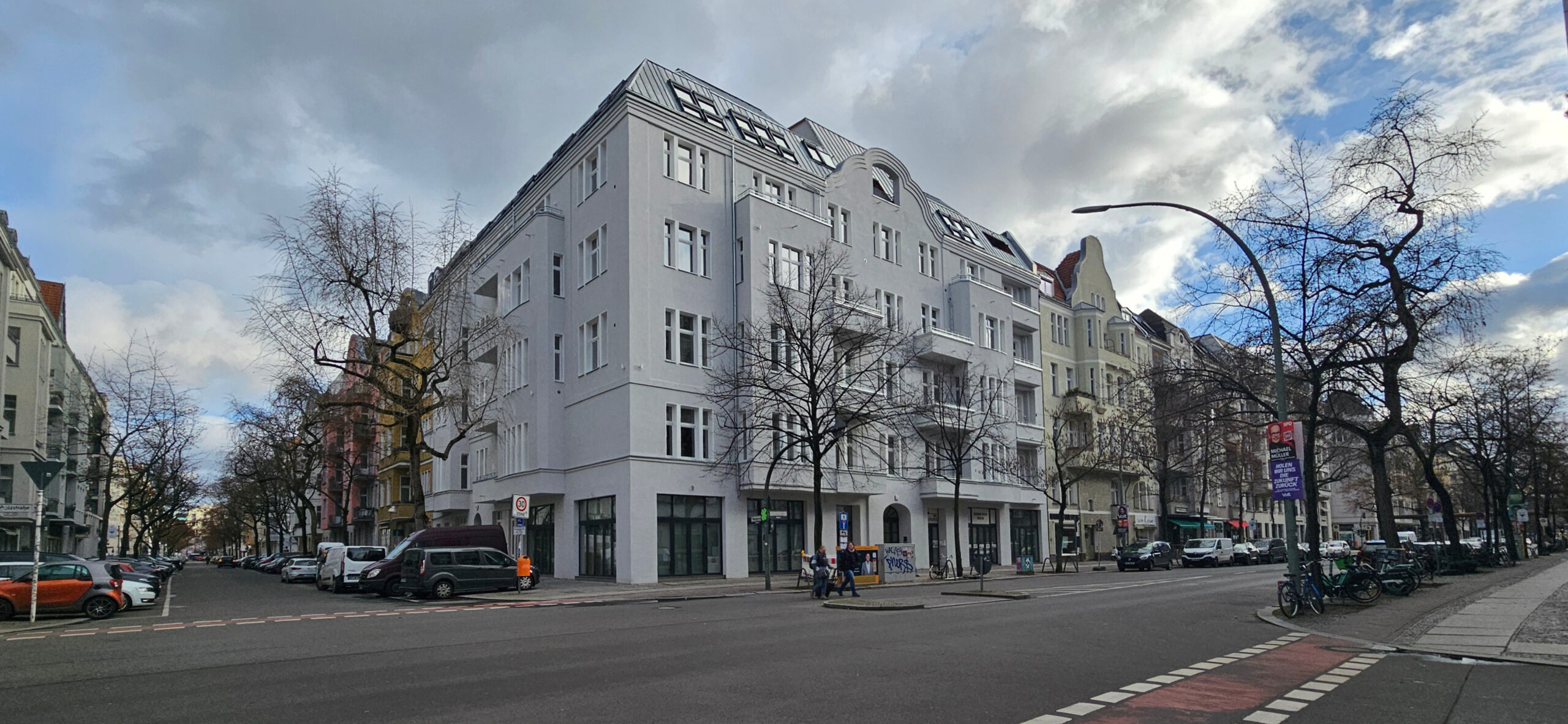 Im Herzen von Berlin-Charlottenburg wurde das historische Wohngebäude an der Ecke Leibnizstraße / Niebuhrstraße umfassend saniert und erweitert. Der Fokus lag auf der behutsamen Revitalisierung der Altbausubstanz sowie dem hochwertigen Ausbau der Wohneinheiten im Dachgeschoss. Erhaltene Elemente wie historische Holztreppen und Wohnungseingangstüren wurden restauriert, während neue Holzfenster mit moderner Wärmedämmung, Fußbodenheizung in den Dachgeschossen sowie gedämmte Fassaden mit mineralischem Reibeputz die energetische Qualität verbessern.